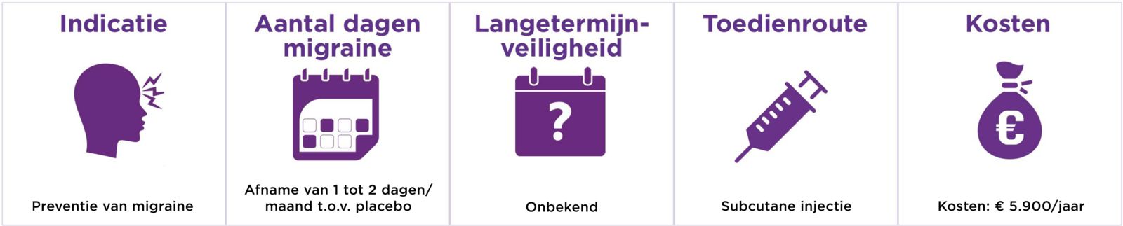 NB: De vergoeding geldt niet bij patiënten met chronische migraine die op 17 september 2021 al in het kader van een managed access program met een CGRP-remmer werden behandeld (VWS, 2025).