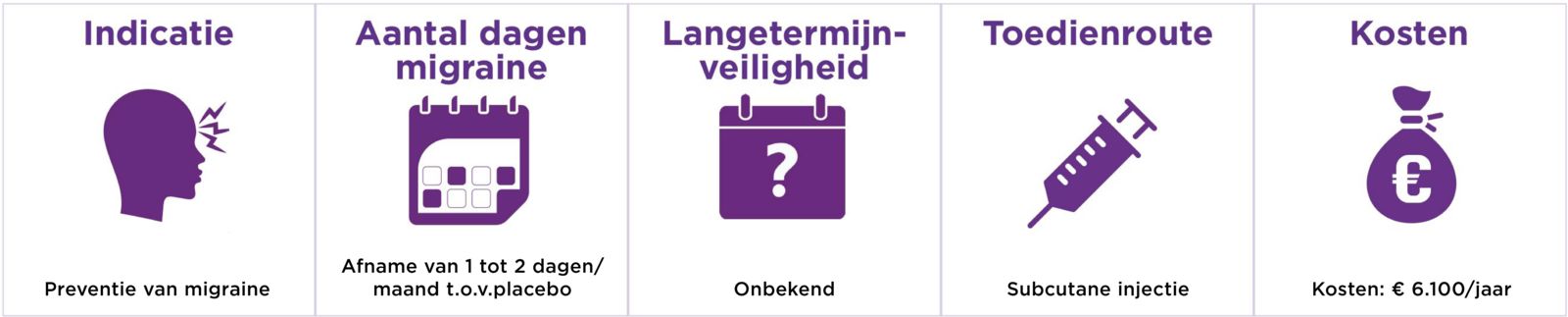 NB: De vergoeding geldt niet bij patiënten met chronische migraine die op 17 september 2021 al in het kader van een managed access program met een CGRP-remmer werden behandeld (VWS, 2025).